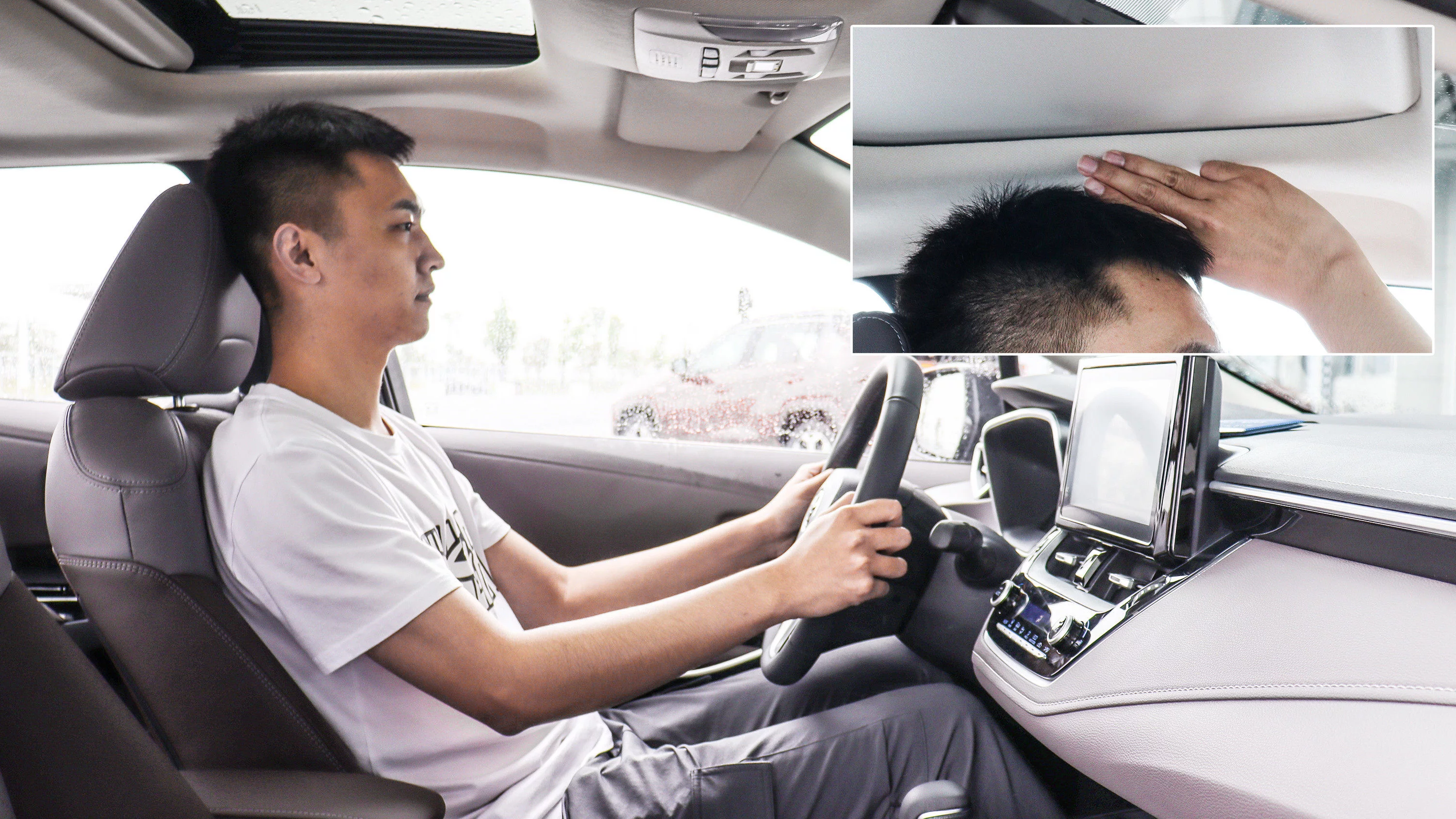 把前排座椅调整到最低位置,以我182cm的身高,以及80kg体重身型的驾驶姿势调整好以后,此时头顶距离天窗下沿仅有3指左右的余量。不过好在亚洲狮非全景天窗的横向宽度较好,所以倒不会感到压抑。