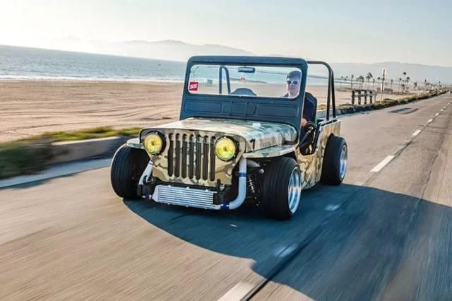 图:这台Jeep的外壳,其实来自一台货真价实的1945年Willys Jeep,等等,前置中冷?